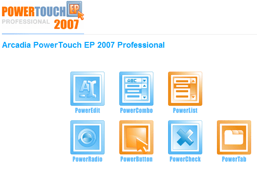 Arcadia PowerTouch EP 2007 Professional 包括 PowerButton,PowerCheck ,PowerCombo,PowerEdit,PowerList ,PowerRadio,PowerTab 七种子控件。