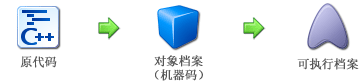 当一个程序被创建时, 编译器 会将程序的源代码 编译 成多个含有机器语言代码的 对象档案 。然后,这些 对象档案 会被衔接在一起而产生最后的 可执行 文档。