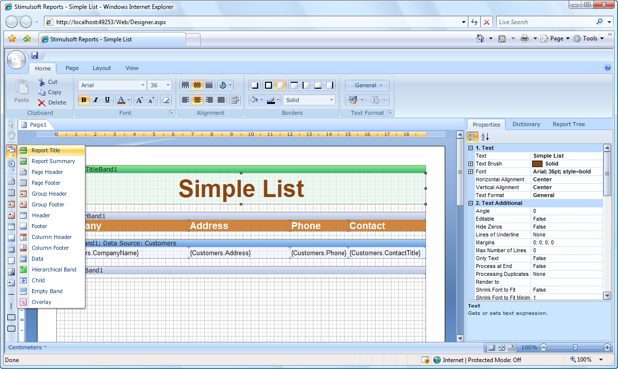 对已创建的报表进行操作 - Stimulsoft Reports的报表预览窗口简单方便并且支持在预览窗口中编辑报表,支持网页格式的报表,可以以不同的格式输出报表。