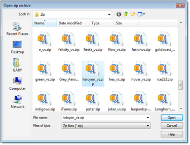 This will display the import style dialog. Select the 'Zip Archive' option and click Open Zip to choose a Zip file, the Zip file is assumed to contain one or more msstyles files.