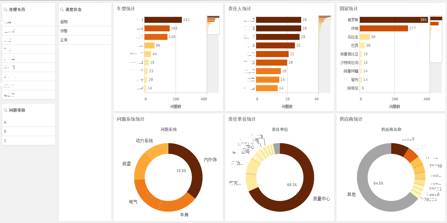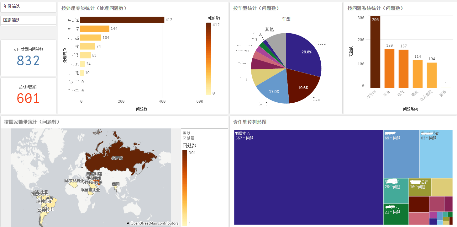 全球售后质量问题分析,责任追踪到专员、备件、备件供应商等。