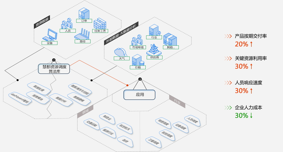 慧都资源调度技术解决方案,通过连接生产企业接单、采购、制造整个流程,对企业订单、设备、人员等合理调度,帮助提升企业生产效率,真正实现: