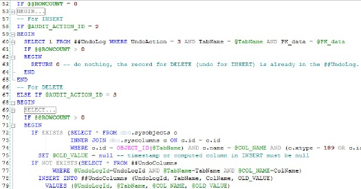 Collapsible regions in code on command eliminators like BEGIN and END to provide a Visual Studio like presentation of your SQL Code.