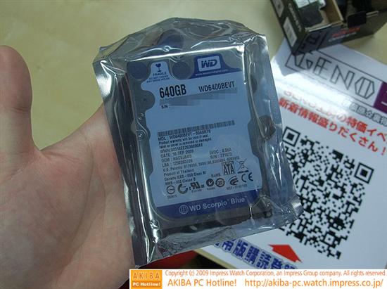 日前在日本秋叶原市场出现的西部数据WD6400BEVT属于WD Scorpio Blue蓝盘系列,单碟容量320GB,转速5400rpm,缓存容量8MB,平均延迟5.5ms,寻道时间12ms,闲置噪音24dB,寻道噪音 26dB。闲置功耗0.85W,读写功耗2.5W。提供WhisperDrive静音、ShockGuard防震和IntelliSeek智能寻道技术。