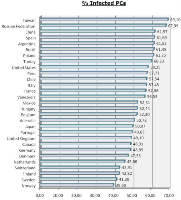 Panda Security提供的最新统计数据,从8月到9月,全球恶意软件数量增加15%,平均59%的计算机感染各种恶意软件和代码.