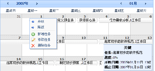 日历图用于任务负责人的日常工作管理,明确自己某段时间内有什么任务、完成情况怎么样、是否延迟了等等。
