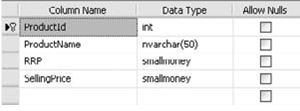其中ProductId设置为自动标示。