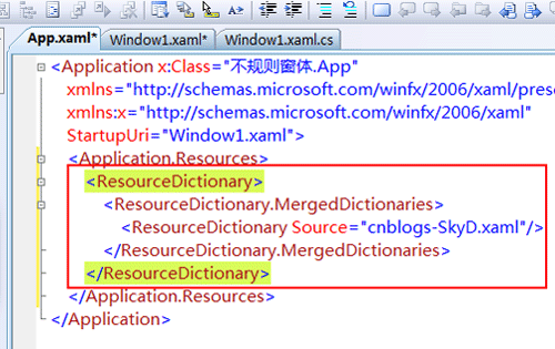 <ResourceDictionary Source="cnblogs-SkyD.xaml"/>