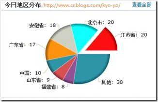 使用过CNZZ统计的朋友肯定知道,CNZZ对访问者的来源统计展示形式是一个饼状展示的,同时通过某块区域时可以突出显示这个区域,如下图: