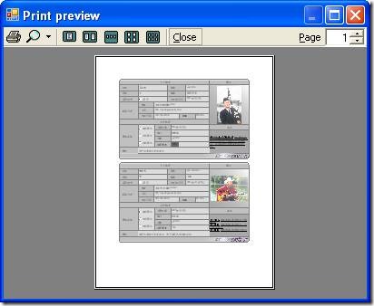 当你的模板比较宽,超出了一页纸可以容纳的宽度,这样就需要两页纸来打印完整的Row,如果这时候你希望一页纸也可以容纳这么宽的模板,你可以设置AutoFitWidth,来将打印时候的模板宽度进行缩小,让纸张可以容纳,这时候为了保证打印出来的效果,高度也会被自动缩小。使用之前的一个模板,看下面没有设置AutoFitWidth之前的一个效果,模板太宽,Row被拦腰折断,需要两页显示一个Row: