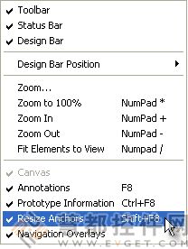 你可以通过"View"菜单或者Shift+F8 热键,打开或者关闭调整锚点的显示。