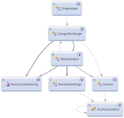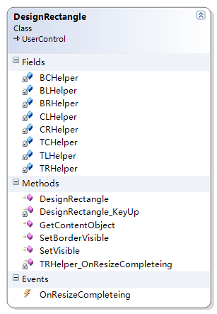 首先我们看一看以DesignRectangle、ResizeHelper、DragHelper为中心的类关系图,在关系图中Auchor类和AuchorLocation枚举在上一节中有详细介绍。