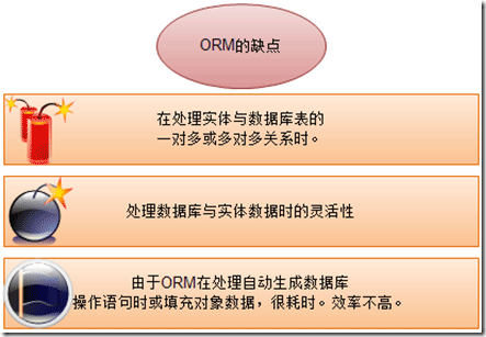 当然ORM框架也不是万能的,有优点的必然存在这一定的缺点,我们来看看ORM的不足: