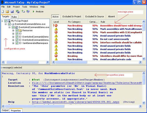 概述:FxCop是一个代码分析工具,它依照微软.NET框架的设计规范对托管代码assembly进行检查。它使用基于规则的引擎,来检查出你代码中不合规范的部分;你也可以定制自己的规则加入到这个引擎。本文详细介绍了FxCop的使用过程,并通过一个示例来进行说明。