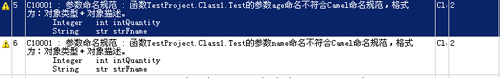 分析结果将显示在"错误列表"的"警告"标签页中。双击其中一项,即可定位到不符合规范的源代码行,即可进行代码调整。