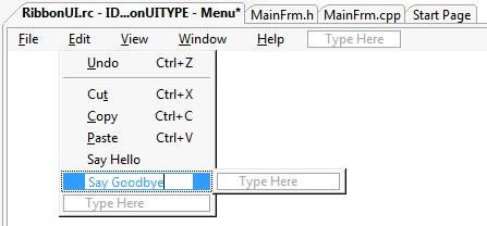 pTestPanel->Add(new CMFCRibbonButton(ID_EDIT_SAYGOODBYE, _T("Say Goodbye"), 2));