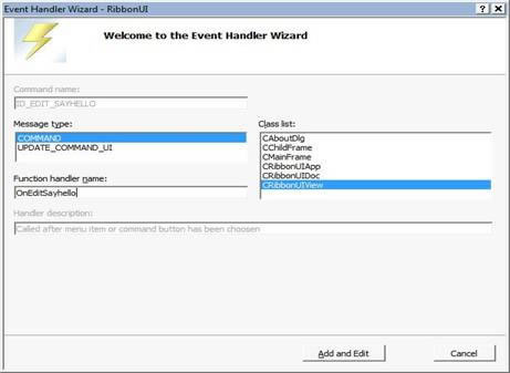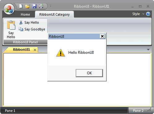 AfxMessageBox(_T("Hello RibbonUI!"));