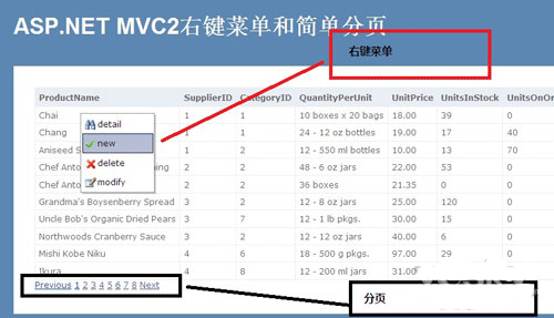 概述:右键菜单非常方便,很多时候会用到。这篇文章将使用一个JQUERY的插件在ASP.NET MVC中实现右键菜单。本文还将介绍一下在ASP.NET MVC中如何实现简单的分页。