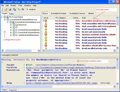 概述:本文详细介绍了FxCop的使用过程,并通过一个示例来进行说明。FxCop是对中间语言进行检测的,所以这里的代码同样适用于C#。