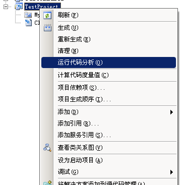 2、与vs2008集成,将这个dll放置到:VS2008安装路径\Microsoft Visual Studio 9.0\Team Tools\Static Analysis Tools\FxCop\Rules\目录下。选择一个项目,鼠标右键点击“运行代码分析”。