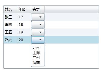 然后就可以在dataGrid里引用籍贯数据,以下是dataGrid的完整代码: