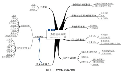 概念是物理学科知识的基础,然而在教学过程中我们发现,学生往往忽视对基本概念的掌握,特别是不能够形成概念网络,更不能够比较深刻的了解概念间的联系,这成为了学习困难的主要原因。在一般的教学过程中,教师也要求学生总结概念结构,但是往往由于检查不及时等原因,没有在教学过程中得到落实。现在可以利用有关软件,根据思维导图的要求,在老师的指导下由学生总结概念结构了,这种方法学生十分愿意接受,首先利用计算机可以提高学生的兴趣,调动学生积极思考,其次,不同学生的作品可以很方便的进行交流,每个学生都可以从他人那里学习到自己没有想到的东西。在实际操作中,我们有以下一些做法: