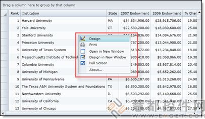 所有Studio for SharePoint Web部件都有一个带有打印按钮的上下文菜单。当你想创建一个网格视图报表时,这项打印功能使相当有用的。