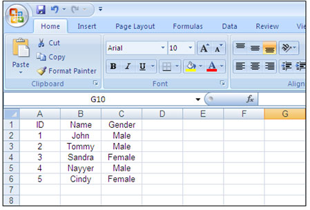 在下面的例子中,我将使用到一个包含了5行3列的Excel表单。DataTable类提供了将表单第一行作为ColumnName的功能。在下面指定的代码中,我们将使用Aspose.Cells来打开Excel表单。在下面的例子中,我们将从工作薄的第一张表单中读取数据,通过Aspose.Cells的ExportDataTable(….)方将数据导出到DataTable对象。