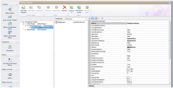 在第一项Ribbon Items里,可看到刚才新建的Page和PageGroup,在这里选中想要删除的项目,点击上面的Remove既可。