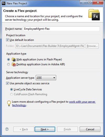 首先安装 Flex Builder 3,可以在 Adobe 的官方网站获得 30 天免费试用版。然后,打开 Flex Builder 3,创建一个新的 Flex Project,命名为 EmployeeMgmt-Flex: