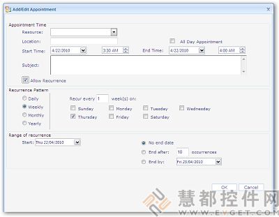 当安排定期约会时,循环约会模式就显得非常有用了。这些模式主要分为每天,每周,每月,每年。现在,每一个模式都被进一步划分为类似于OUTLOOK 的子模式了。
