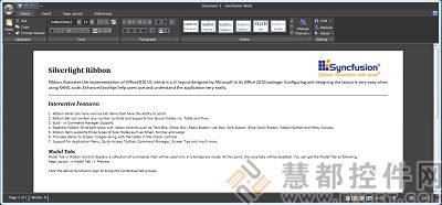 RichTextBoxAdv控件另外一个非常具有吸引力的特征就是ribbon支持。RichTextRibbon控件带有内置命令,当设置了数据上下文时,能够执行RichTextBoxAdv控件功能。