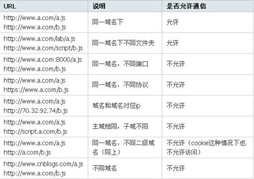 虽然浏览器默认禁止了跨域访问,但并不禁止在页面中引用其他域的JS文件,并可以自由执行引入的JS文件中的function(包括操作cookie、Dom等等)。根据这一点,可以方便地通过创建script节点的方法来实现完全跨域的通信。具体的做法可以参考YUI的Get Utility
