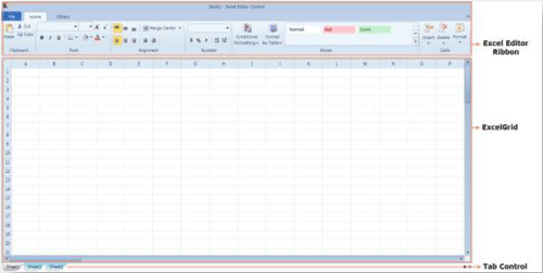 电子表格控件允许你查看和编辑Excel文件。它由其他三个控件组成:Ribbon控件(提供网格上面的命令),Tab控件(使你可以选择不同的表单)和Grid控件(内含行和列)。