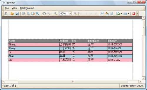运行时显示一个数据表格中的数据 交替换表格的颜色。