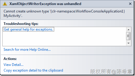 当然,如果自定义Activity是单独的Assembly,则应该默认就会写上Assembly信息,那种情况反而是没有问题的。