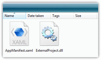 <Deployment xmlns="http://schemas.microsoft.com/client/2007/deployment" xmlns:x="http://schemas.microsoft.com/winfx/2006/xaml" EntryPointAssembly="ExternalProject" EntryPointType="ExternalProject.App" RuntimeVersion="2.0.30523.6"> <Deployment.Parts> <AssemblyPart x:Name="ExternalProject" Source="ExternalProject.dll" /> </Deployment.Parts> </Deployment>