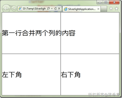 Text="第一行合并两个列的内容" Grid.ColumnSpan="2"></TextBlock>