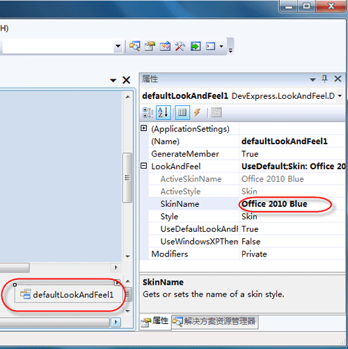 UserLookAndFeel.Default.SetSkinStyle("Office 2010 Blue");