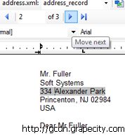 启动示例程序之后,点击File/Load菜单加载示例文档,该文档包含很多合并域字段,将输入光标定位到一个存在的字段中,例如《COMPANY》字段: