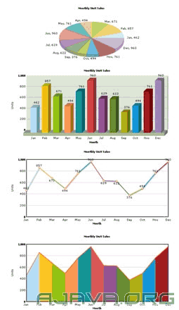有时候我们需要在一个页面里显示多个图形,例如,我们同时以饼图、柱状图、曲线图、区域图四中形式来表现每个月的销售情况,让用户想看哪个就看哪个。