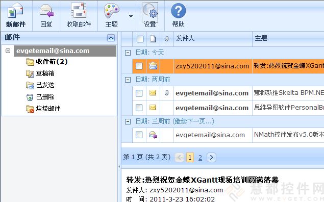 EvWebMail是新一代灵活、高效、集成并具有丰富功能的邮件插件。它通过Asp.Net极好的实现了在线邮件发送、接收以及邮件列表管理的效果,界面友好性强,具有极好的扩展性,开发者可以直接通过用户组件的方式进行使用,只需要极少的代码,就可将它整合到系统中,并且可方便的进行二次开发和功能扩展。