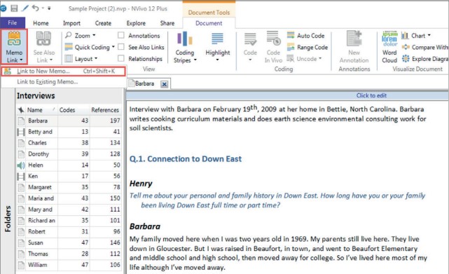 当你对数据中的模式进行编码时,你可能已经在研究杂志上做了笔记。你们可能将从对文本的分析,转向对代码和它们之间关系的分析。在Ribbon中,选择Explore选项卡并单击Coding。