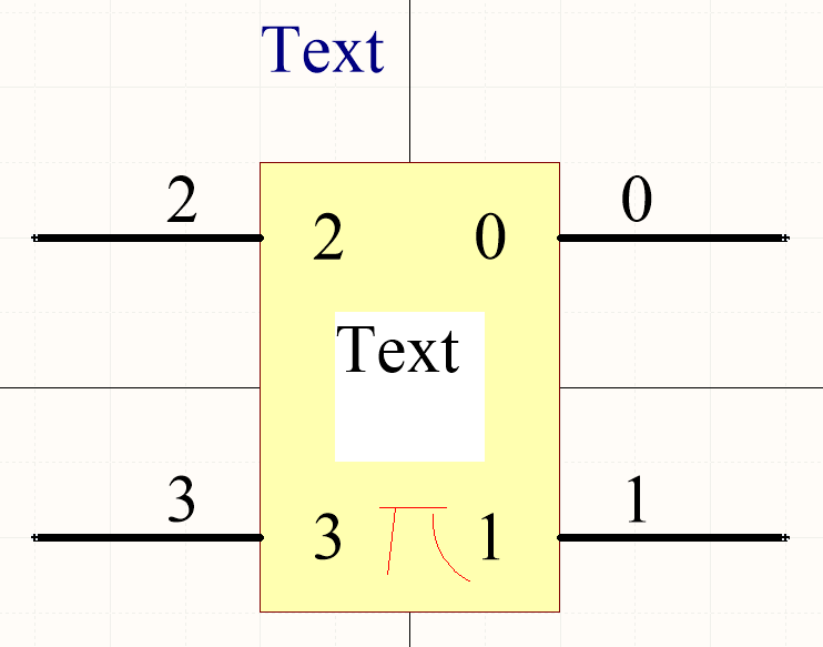 在“项目”>“库”>“添加新的SCH库”中,在其自己的库中创建原理图的符号。该符号是使用“主页”>“放置”功能区中的功能形成的。可以从“主页”>“模板”>“符号”和“主页”>“放置IEEE符号”中使用IEEE符号来使用预定义的符号形式。该符号将包含形状,大头针,文本和符号标记。出于示例目的,这是一个“非描述性”四针符号: