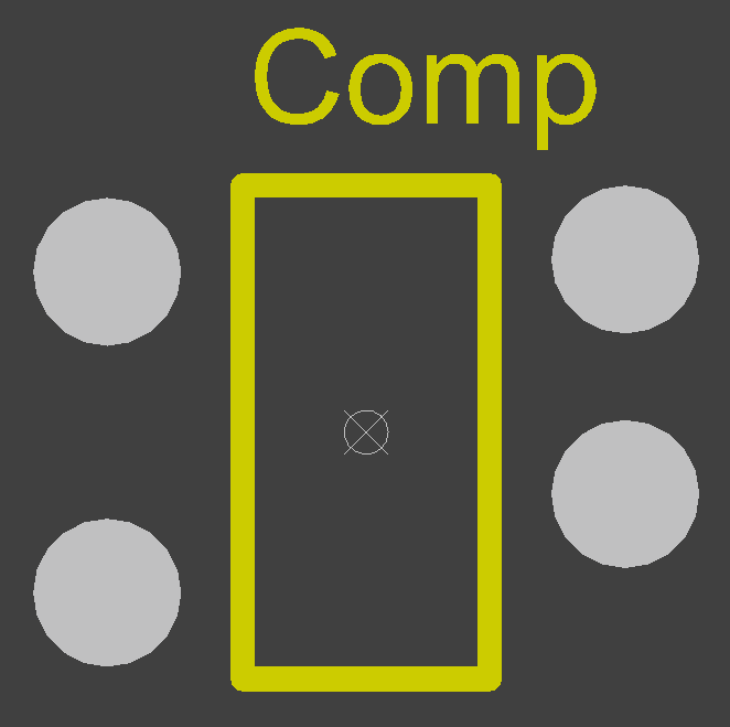 在“项目”>“库”>“添加新的PCB库”中,在自己的库中创建PCB的封装。使用“主页”>“放置”功能区中的功能形成覆盖区。足迹将包含形状,填充物和文本以及其他项目。足迹也可以带有高度。出于示例目的,这是一个“非描述性”的四引脚封装: