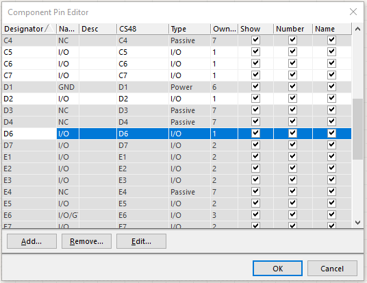 如果在组件中定义,则在PCB中时,插针,对和零件之间可能发生交换:
