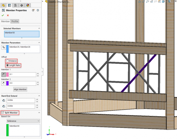 说到次要成员,那里也有改进。现在,您可以定义平面或面与两个主要成员相交的成员,甚至可以仅定义到两个主要成员两端的距离或长度比。另外,现在您可以直接在物业经理中拆分这些成员。这就是使我能够进行这种复杂的栏杆设计而无需创建任何草图几何图形的原因。