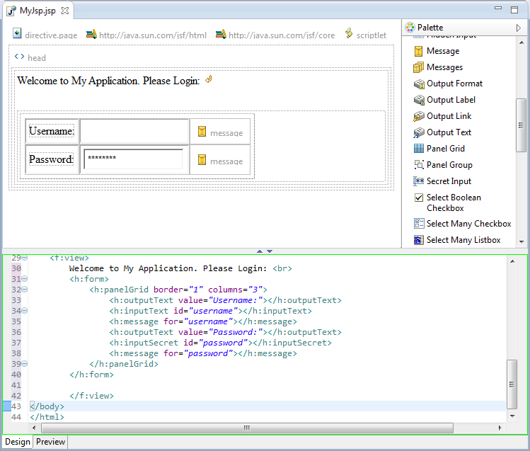 概述:Visual JSF设计器的目标是使创建JSF应用程序的特定于组件的工作更容易可视化。在本教程中,您将使用visual designer设计一个JSF登录页面,学习如何创建一个JSF项目、创建一个新的JSF页面和设计JSF页面。
