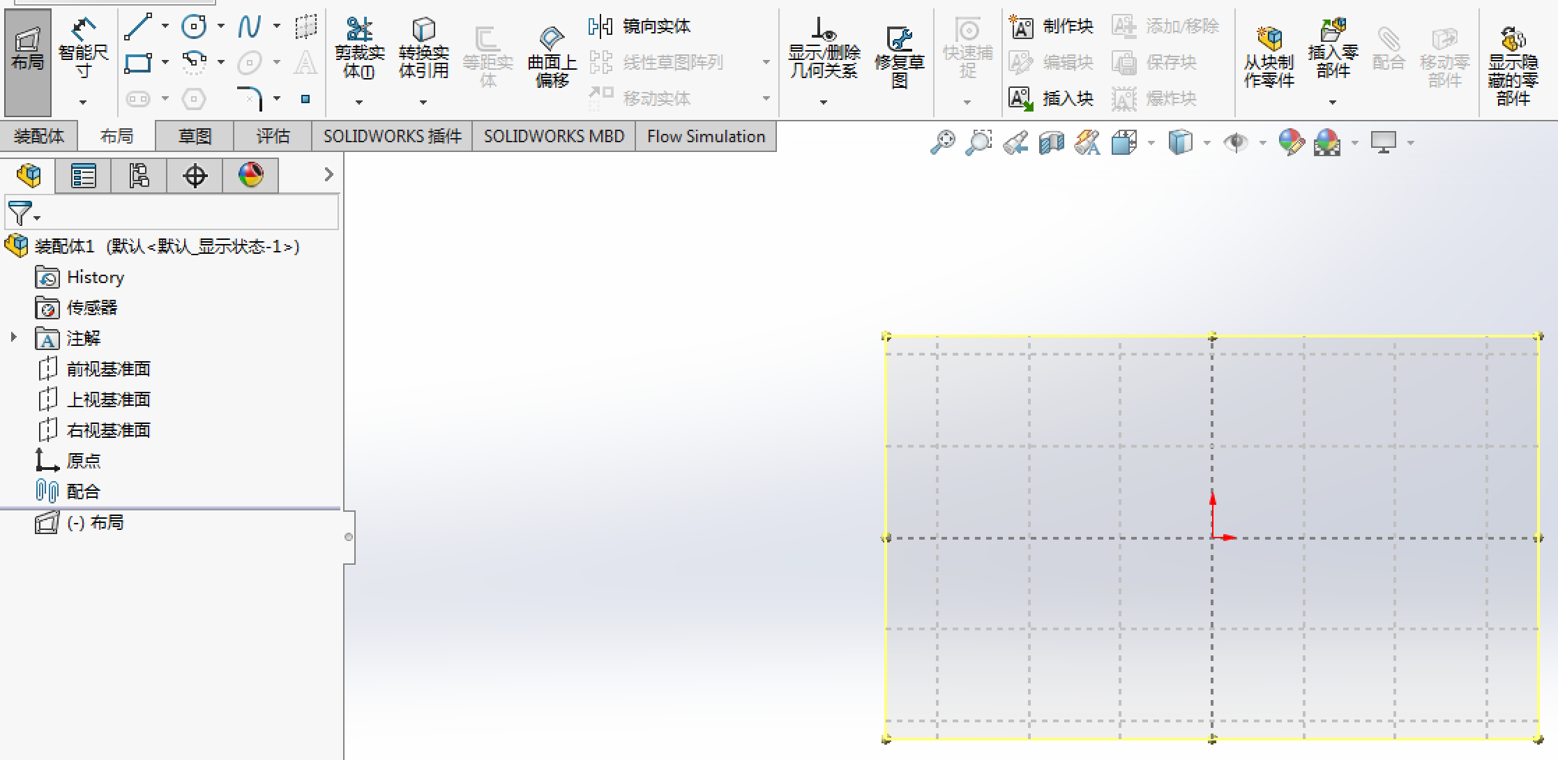 此时将打开一张3D草图,布局现在FeatureManager设计树中。