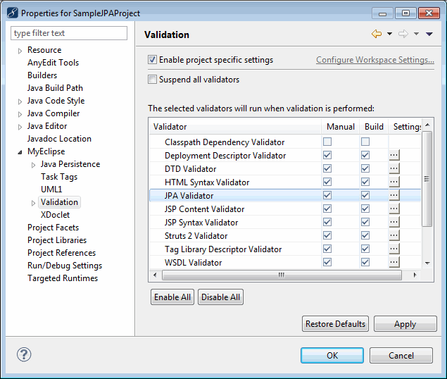 MyEclipse为OpenJPA、Hibernate和EclipseLink JPA提供程序提供支持。